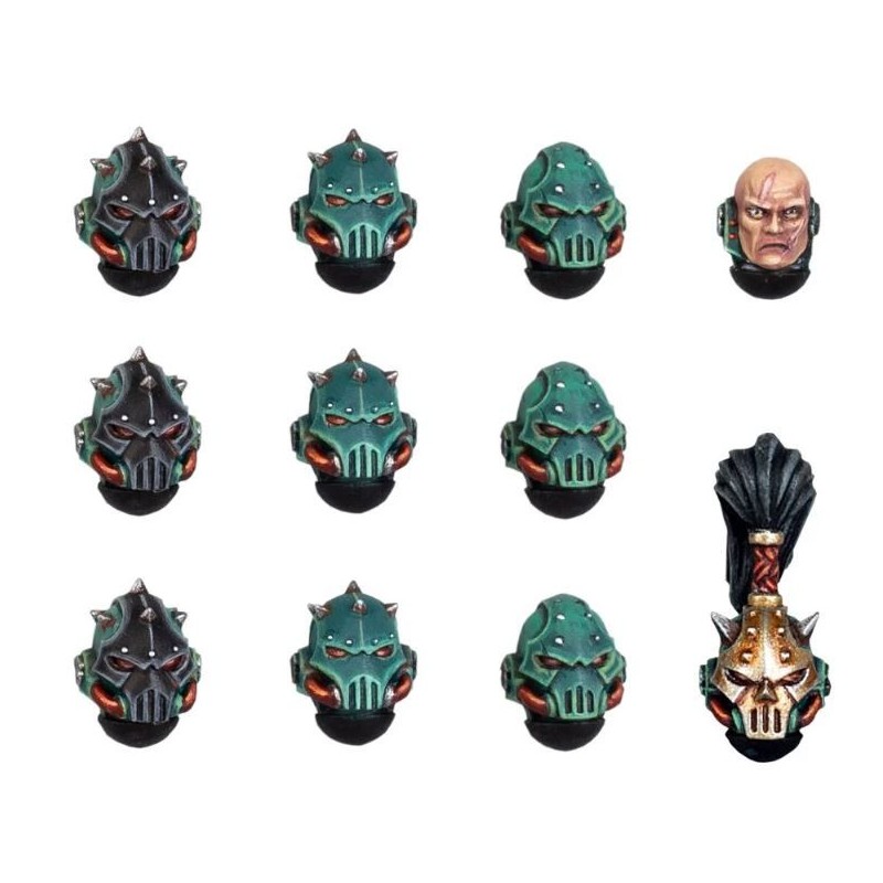 Ce kit d'amélioration peut être utilisé pour personnaliser les légionnaires du set MKVI Tactical Squad avec de nouvelles têtes, en remplaçant les casques standard à "bec" par les traditionnels masques de guerre cthoniens communs aux Fils d'Horus. Le kit comprend neuf têtes casquées dans trois designs différents, chacune comportant des pointes décoratives et un respirateur muselé, ainsi que deux têtes conçues pour les sergents - une tête nue, et un casque avec un impressionnant topknot. Répartissez ces composants dans votre armée pour ajouter une touche de XVIe Légion, ou équipez des escouades entières pour un look d'élite unifié.