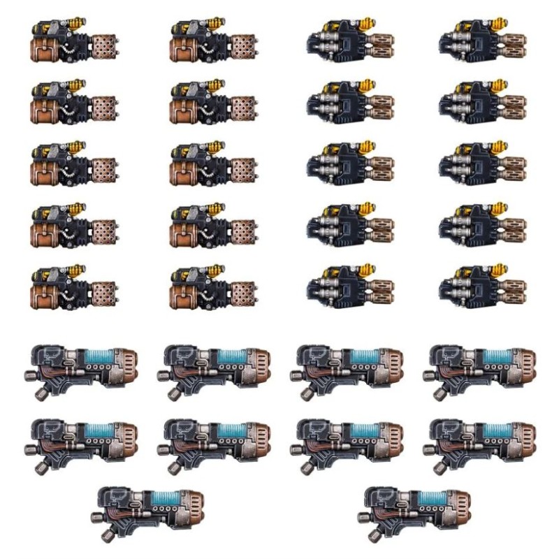 Ce kit plastique d'améliorations peut être utilisé pour équiper les Légionnaires du set d'Escouade Tactique MKVI de puissantes armes lourdes pour les ajouter à une Escouade de Soutien de Légion. Le kit contient 10 lance-flammes lourds, 10 multifuseurs et des canons à plasma montés sur l'épaule, ainsi que les bras adaptés à chaque arme. Cela vous permet d'améliorer jusqu'à trois Escouades de Soutien de 10 figurines, ou six unités de cinq figurines. Le kit contient également quatre scanners augures pouvant être portés en plus d'une arme lourde, permettant à vos Escouades de Soutien de détecter et d'éliminer les unités ennemies.