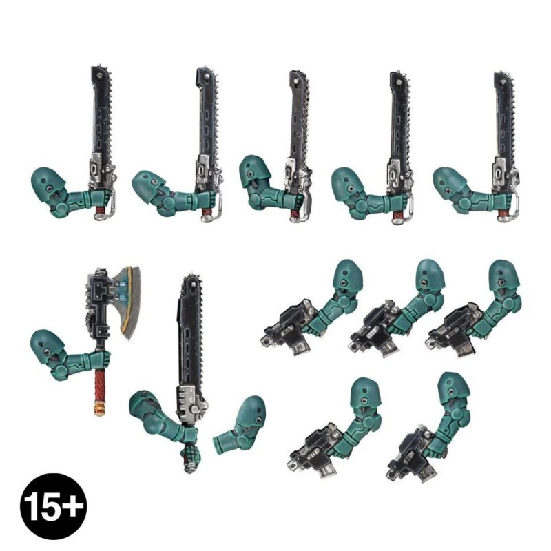 Ce kit d'amélioration en résine vous permet d'équiper vos Space Marines avec les armes d'assaut communes aux escouades de spoliateurs de la Légion. Le kit comprend cinq bras portant des pistolets à verrou et cinq bras brandissant des épées-chaînes, pour les Despoilers standard. Il comprend également un bras portant une hache électrique et une paire de bras brandissant une épée lourde à deux mains, pour les combattants spécialisés ou un sergent Despoiler. Ces composants sont compatibles avec les escouades tactiques en plastique de la Légion en armure MKIII, MKIV et MKVI, ainsi qu'avec divers kits en résine en armure MKV.