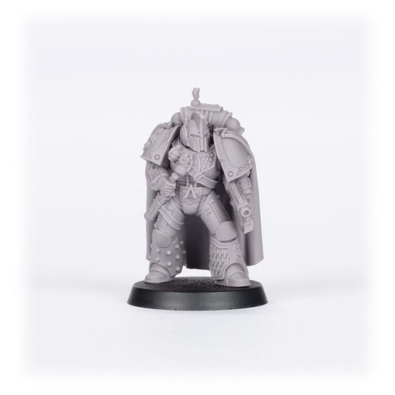 Ce kit en résine permet d'assembler un Consul Saboteur, un commandant d'opérations spéciales pour l'Alpha Legion. Il est armé d'une cruelle dague énergétique et d'un fusil à pompe Astartes en bandoulière, tous deux partiellement cachés sous sa cape de caméléonine furtive. Une bandoulière de grenades, dont une sphère à venin emblématique de sa Légion, est accrochée sur son torse, par-dessus une superbe armure d'artificier décorée des sinistres symboles et des écailles de la XXe Légion.