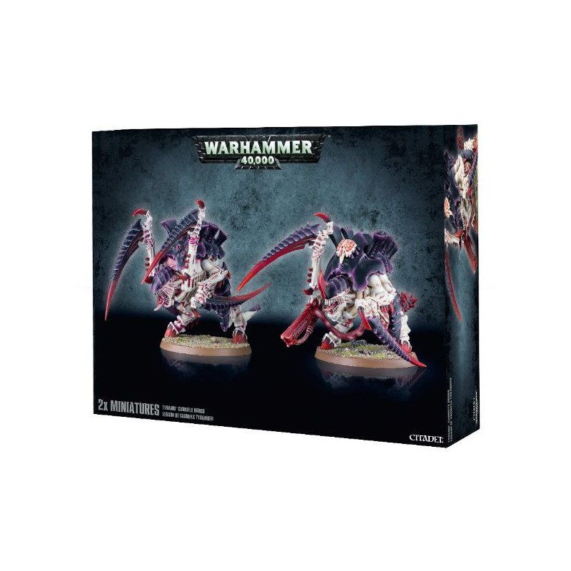 Description du produitCette offre très intéressante inclut 2 Carnifex, que vous pouvez assembler dans des poses variées et avec différentes options d'armes. Chaque Carnifex est fourni avec 2 paires de griffes tranchantes, 1 paire de pinces broyeuses, 1 crache-mort, 1 canon étrangleur et 1 canon venin lourd. Chaque kit comprend 5 choix de tête et les options de biomorphe caudal de battoir tranchant ou de masse d'os. Vous avez même la possibilité d'assembler Le Vieux Borgne.
