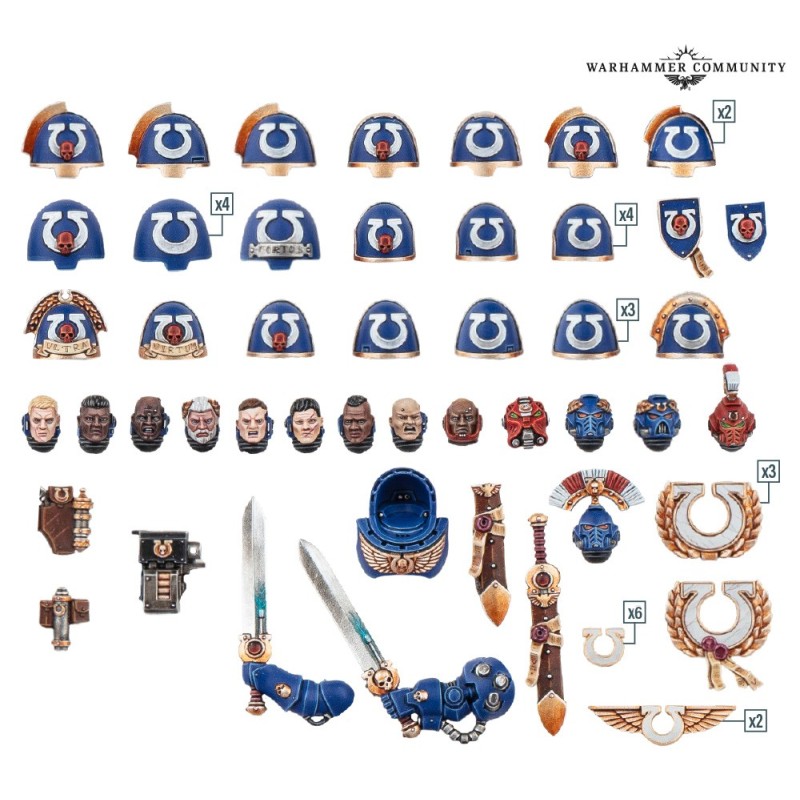 Ce kit en plastique permet de décorer vos figurines de Space Marines, fantassins, Terminators, véhicules et Dreadnoughts, en leur donnant un cachet typiquement Ultramarine ainsi qu'un surplus de personnalité. Vous y trouverez des accessoires, des détails décoratifs, des têtes pleines de caractère et des épaulières sculptées pour divers types d'armures.