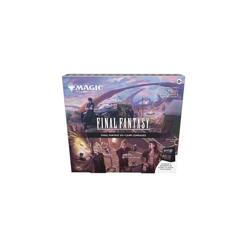 Description du produitCette boîte scénique Magic: The Gathering—FINAL FANTASY contient 6 cartes scéniques sans bordure Premium traditionnelles, 6 cartes d’illustration, 3 boosters de jeu et un chevalet de présentation en papier. Chaque booster de jeu contient 14 cartes Magic: The Gathering, avec 1 à 4 cartes de rareté rare ou supérieure, 3 à 6 cartes inhabituelles, 6 à 9 cartes courantes et 1 carte de terrain. Une carte de n’importe quelle rareté est Premium traditionnelle. La carte de terrain est aussi Premium traditionnelle dans 20 % de boosters. Ce produit ne contient pas de carte Chocobo doré (disponible uniquement dans les boosters collector en anglais).