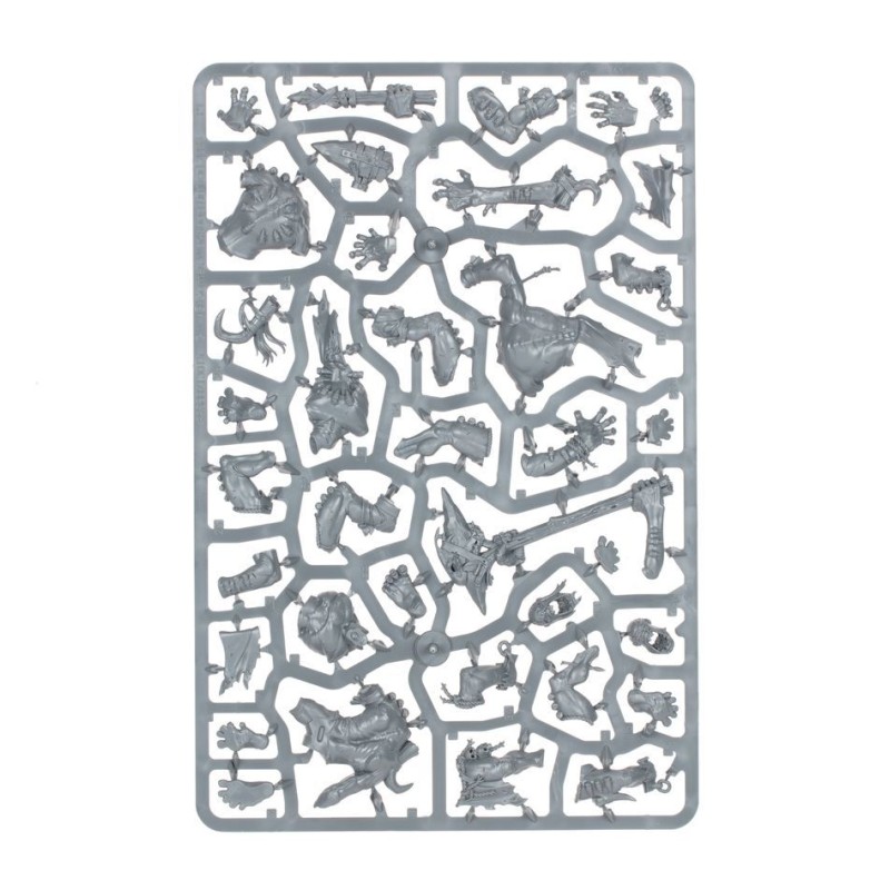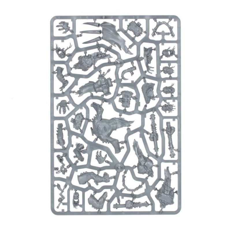 Ce kit plastique permet d'assembler une bande complète de Meutegueule d'Engorgeurs, utilisable dans les parties de Warcry. La plus imposantes de ces monstruosités émaciées est le Dos Dentelé, tandis que le Hurleur des Cavernes dément est affublé d'un rugissement mystique. Ces bêtes sont suivies par des Engorgeurs voraces maniant de grandes massues et de haches de pierre grossières. Vous trouverez de nombreuses options esthétiques et d'armes pour ajouter de la variété à vos Engorgeurs, avec notamment différentes massues et têtes grimaçantes.