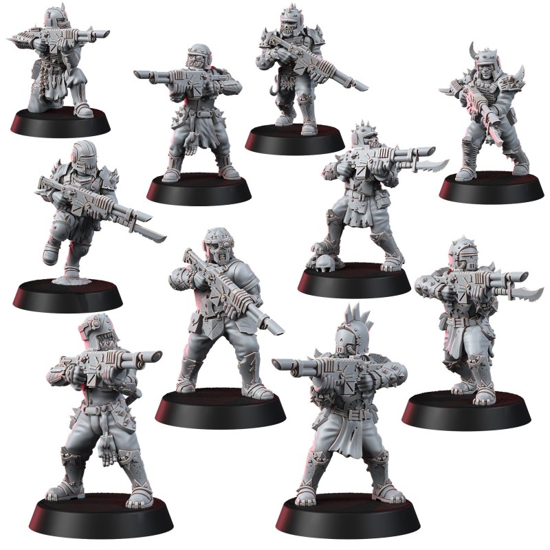 Une unité de 10 figurines parfaites pour jouer des humains entrainés et corrompu dans divers univers futuristes.