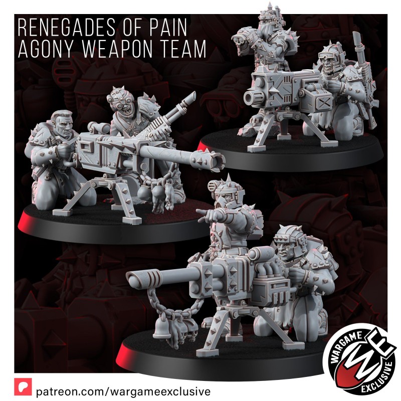 Alors, commandants des Renégats, libérez ces pourvoyeurs de douleur sur vos ennemis et regardez la galaxie trembler devant la puissance de vos équipes d'armes d'agonie. Laissez les cris de vos ennemis être le refrain de votre victoire, et faites savoir à la galaxie que les Renégats de la Douleur sont les véritables annonciateurs de l'agonie et du désespoir !