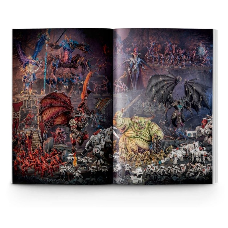 Dans ces pages, vous trouverez toutes les informations sur le décor lugubre et déchiré par la guerre de Warhammer 40,000: on ne parle pas des ténèbres du lointain futur par hasard! Vous pourrez vous renseigner sur tous les aspects du hobby Warhammer 40,000, de la collection d'armées de stupéfiantes figurines Citadel à leur peinture aux couleurs de votre choix, puis à la façon de les mener au combat lors de parties de jeu de bataille palpitantes.
