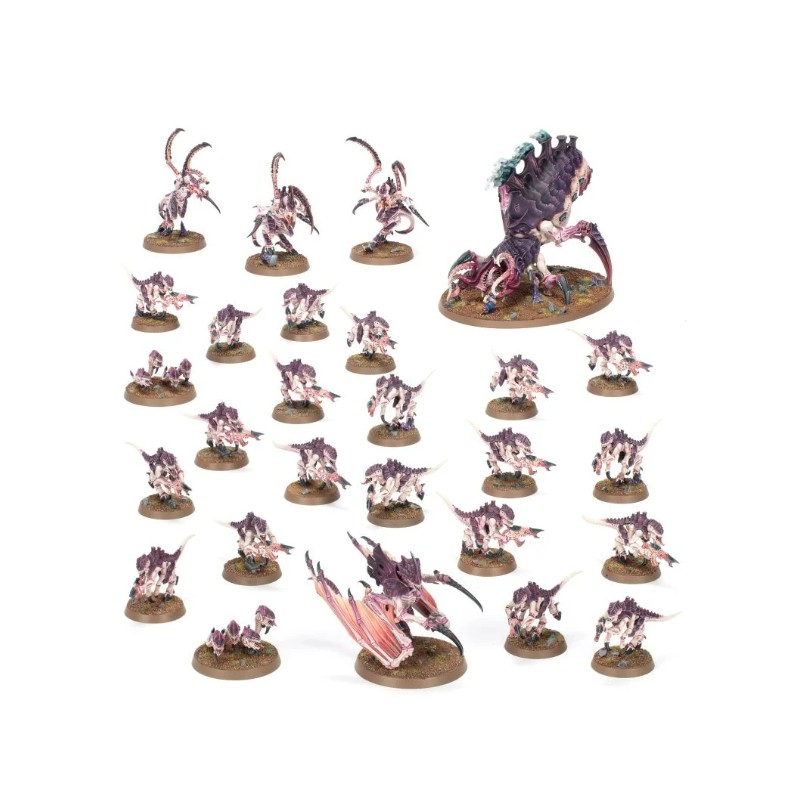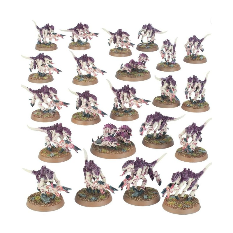 - 20x Termagants: Des hordes cavaleuses de créatures tyranides simples, équipées d'armes qui tirent des projectiles vivants
