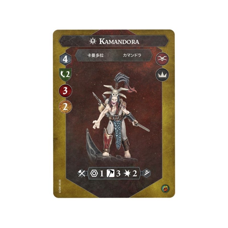 Description du produitLes Lames de Kamandora vivent dans les désolations laissées par les armées de Khorne. Menés par leur matriarche, les sauvages Ghalista, Antro Krast et le molosse Kannat affaiblissent et saignent leurs ennemis avant que Throkk leur tranche la tête. L'objectif de ce clan est d'ajouter ces crânes à la morbide pyramide qui signale le lieu où le légendaire Korghos Khul a connu l'apothéose démoniaque. Au cours de leur périple, ils doivent traverser Gardebraise, où Kamandora sent qu'il y a des crânes de valeur à récolter…