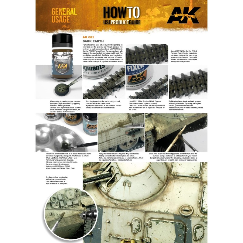 Description du produitLa gamme de pigments AK Interactive, très utilisée dans le modélisme pour simuler salissures, poussière, rouille, terre, suie, etc.