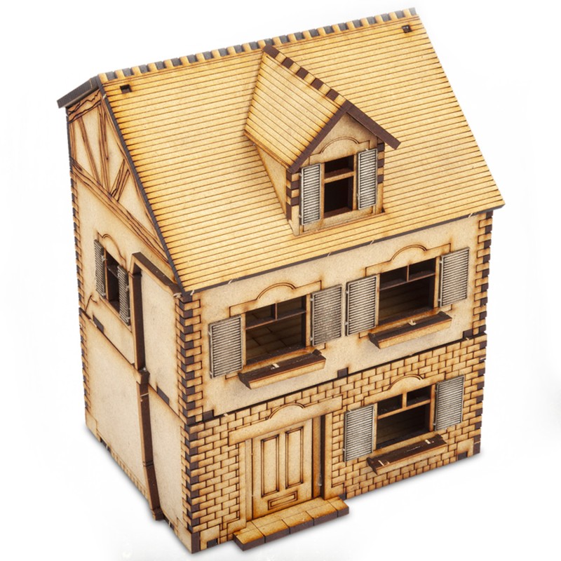 Description du produitLe Village Maison Amélie a une façade à moitié maçonnée, des pas de porte et une gouttière qui descend le long de son côté. Le toit et le deuxième étage sont amovibles, ce qui vous permet de positionner vos soldats et de mettre en garnison les veuves. Il s'agit d'un excellent élément de décor à utiliser sur la table pour les jeux de la guerre mondiale et il s'accordera parfaitement avec d'autres jeux 25mm.