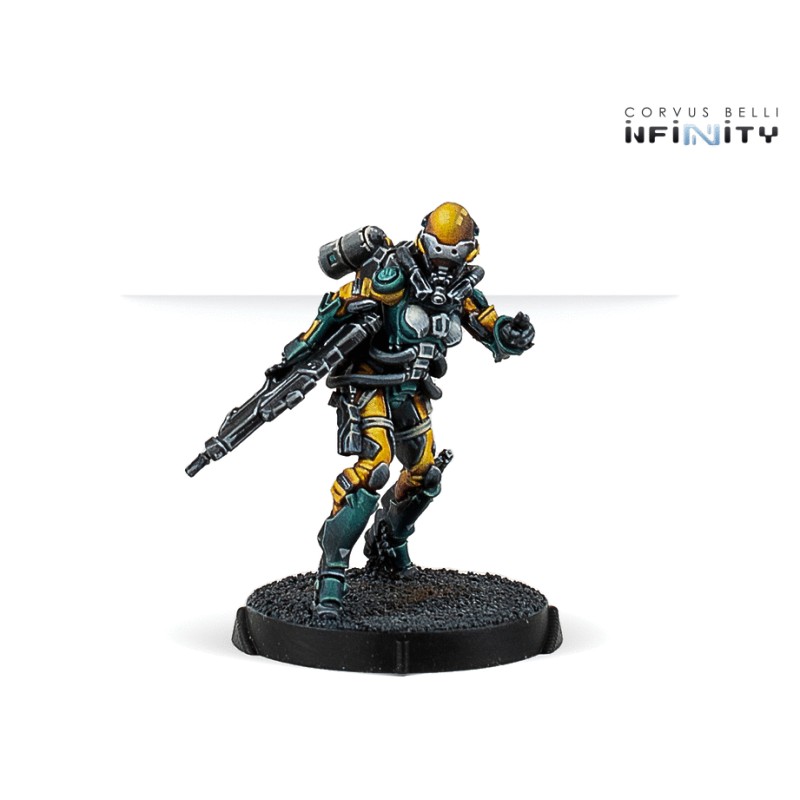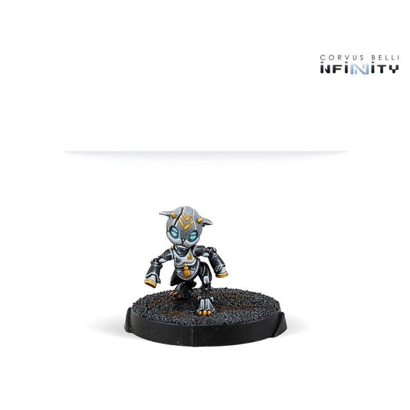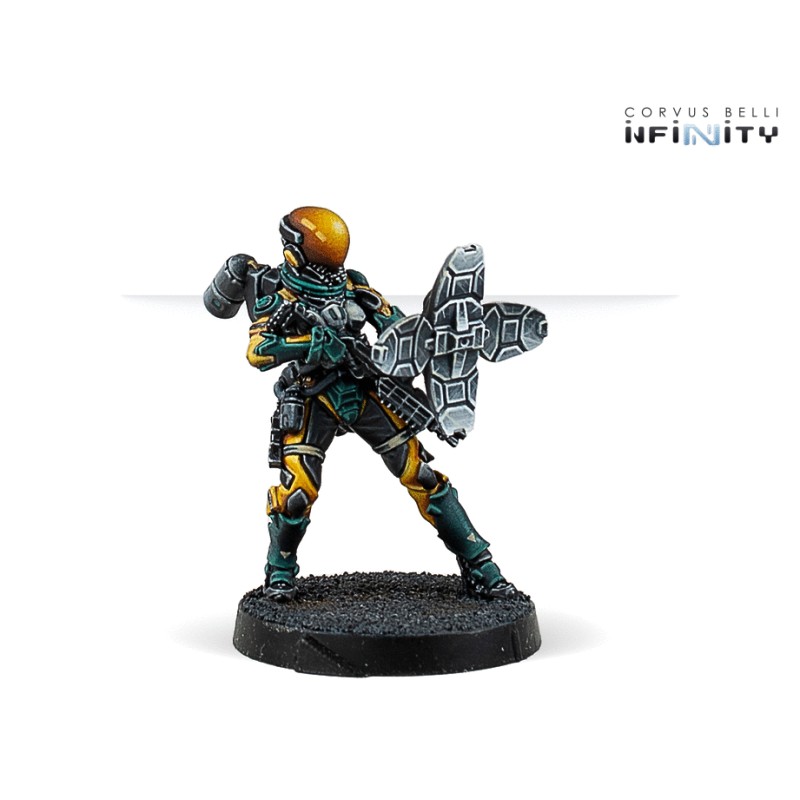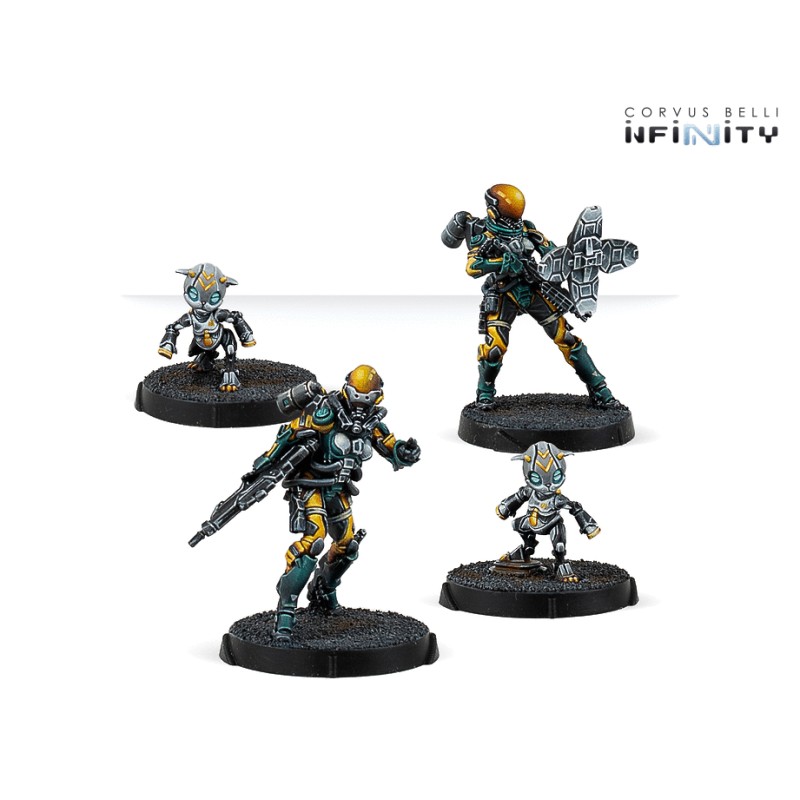 Cette boîte comprend 4 figurines en métal : 1 Tiangou Hacker, 1 Taingou avec Boarding Shotgun et Jammer, et 2 MadTraps différents. Agissant en Fireteam ou seuls avec leurs MadTraps, ces spécialistes du Zero-G sèmeront la confusion parmi les troupes ennemies grâce à leurs holodéviseurs.