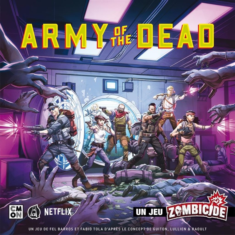 Basé sur le blockbuster de Zack Snyder, Army of the Dead : Un Jeu Zombicide, est un jeu coopératif pour 1 à 6 joueurs incarnant les survivants du film. Ils se confronteront à de nouvelles espèces de zombies, telles que les Boiteux, les Alphas, la Reine, Zeus et même Valentine, le tigre zombie. Les joueurs devront également accomplir des quêtes secondaires qui dévoileront les motifs de la présence de chacun au cœur de ce désert contaminé. Cette fois-ci, les survivants ne sont pas de simples citoyens. Il s’agit de vétérans endurcis, entraînés au combat et experts en explosifs.